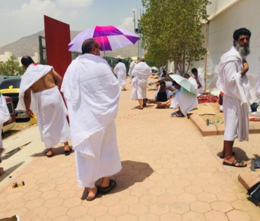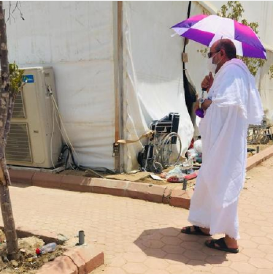 رُصد وزير الاوقاف والشؤون والمقدسات الإسلامية رئيس بعثات الحج الاردنية الدكتور عبد الناصر ابو البصل اثناء تفقده خيم الحجاج الاردنيين في عرفة متخفيا