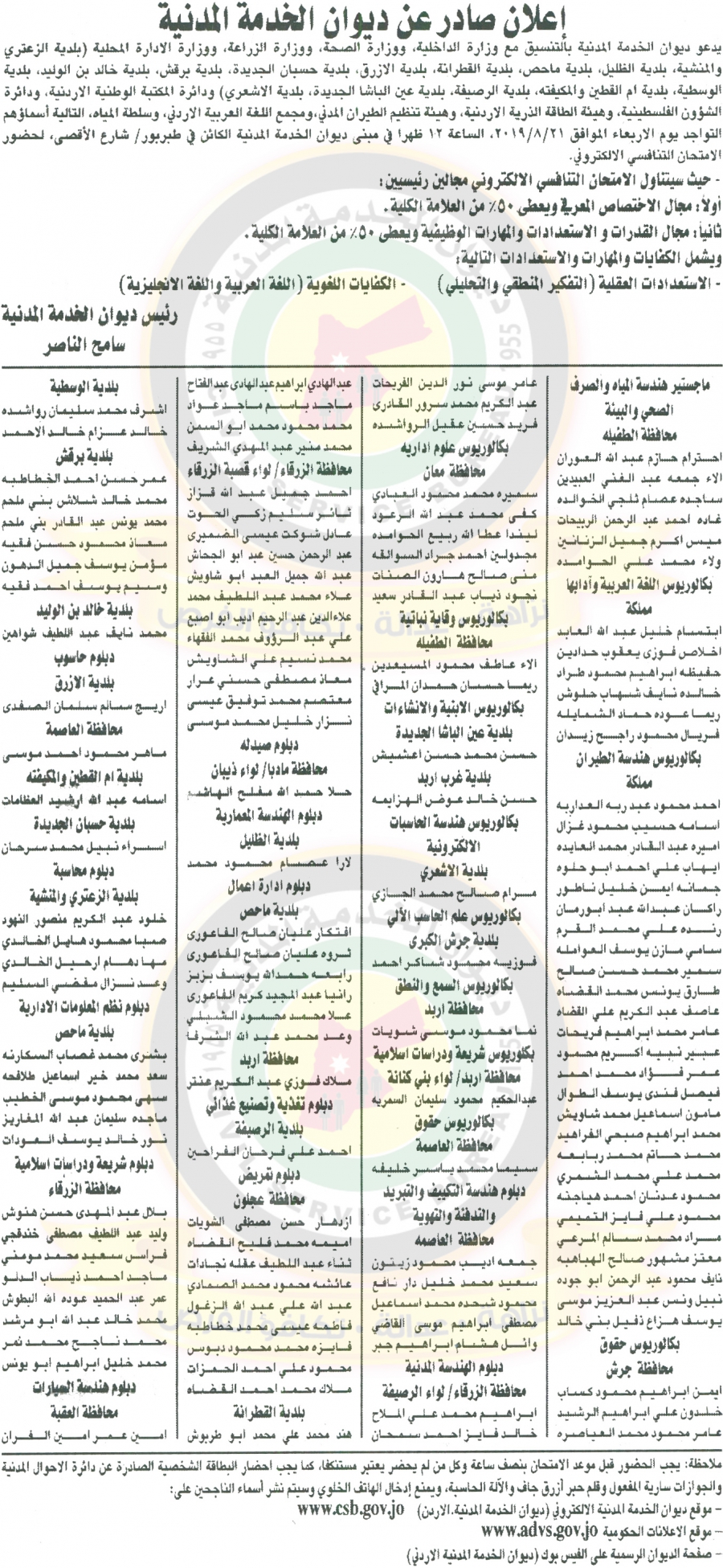 [face=arial]<font size="5">المدعوون لحضور الامتحان التنافسي الالكتروني يوم الاربعاء الموافق 21/8/2019 الساعة 12 ظهراً[/face]