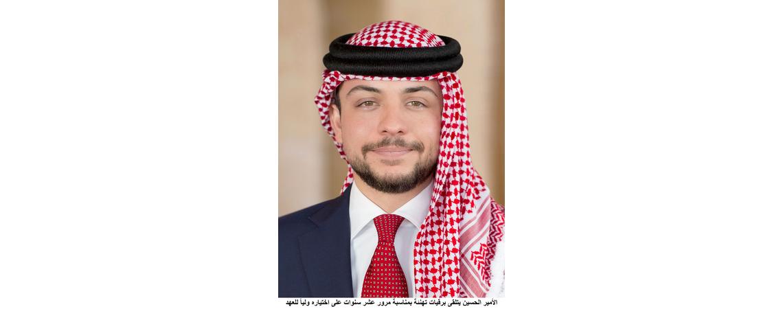 الأمير الحسين يتلقى برقيات تهنئة بمناسبة مرور عشر سنوات على اختياره ولياً للعهد
