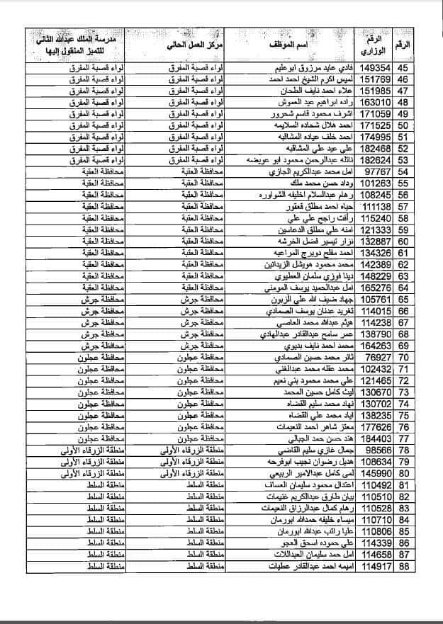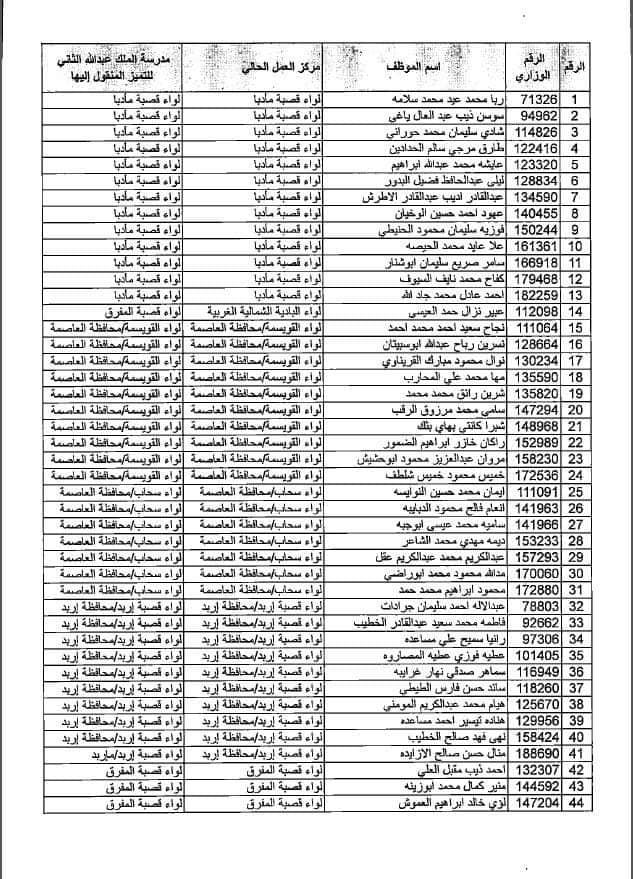 وزاره التربية والتعليم الغاء النقل الخارجي للمعلمين والمعلمات التاليه اسمائهم