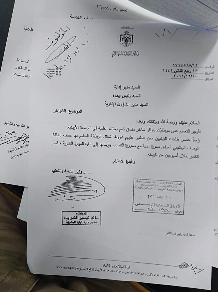 اسماء مدعويين لتعين في وزاره التربية والتعليم بوظيفة معلم 9/12/2019