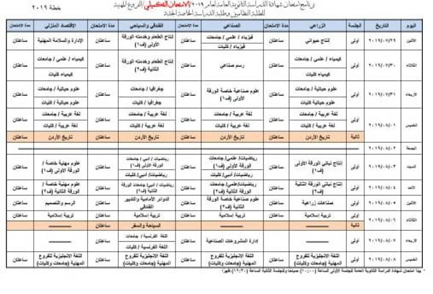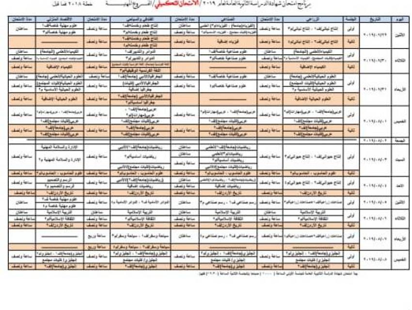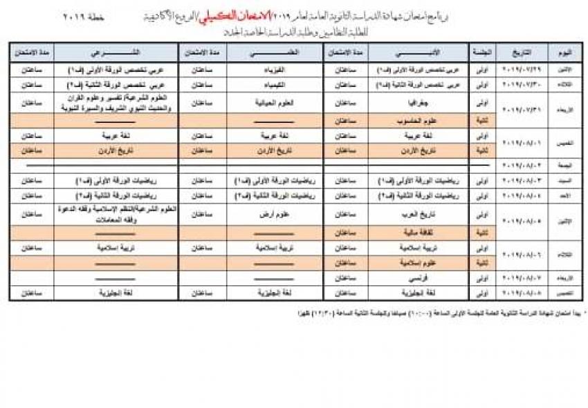 امتحان شهادة الدراسة الثانوية العامة لعام 2019