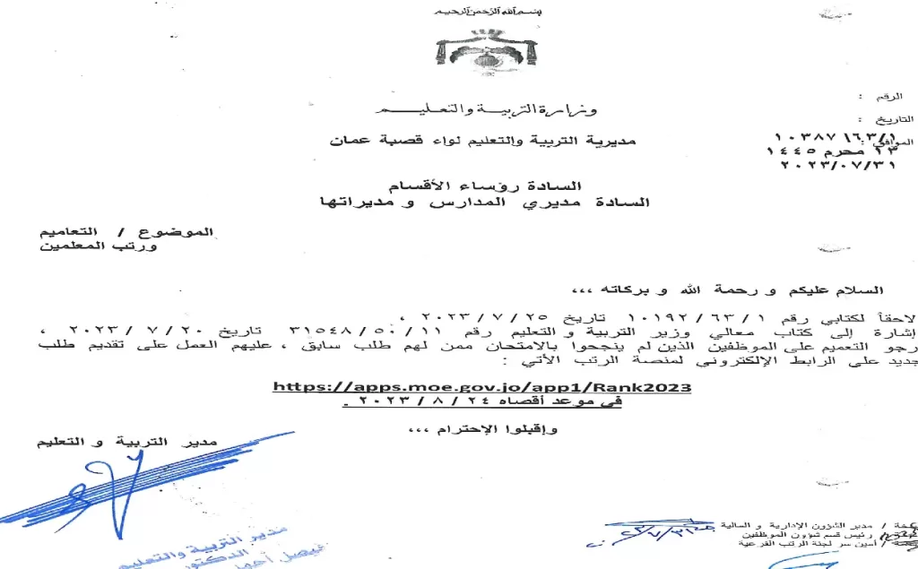 تعميم هام للذين لم ينجحوا بامتحان الرتب ولهم طلب سابق 31/7/2023