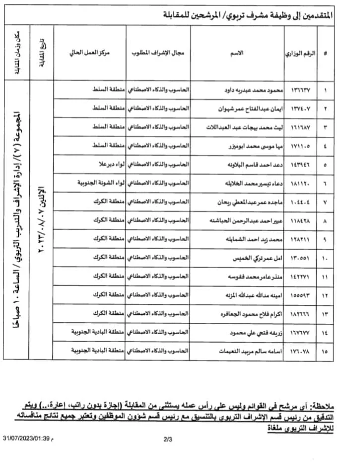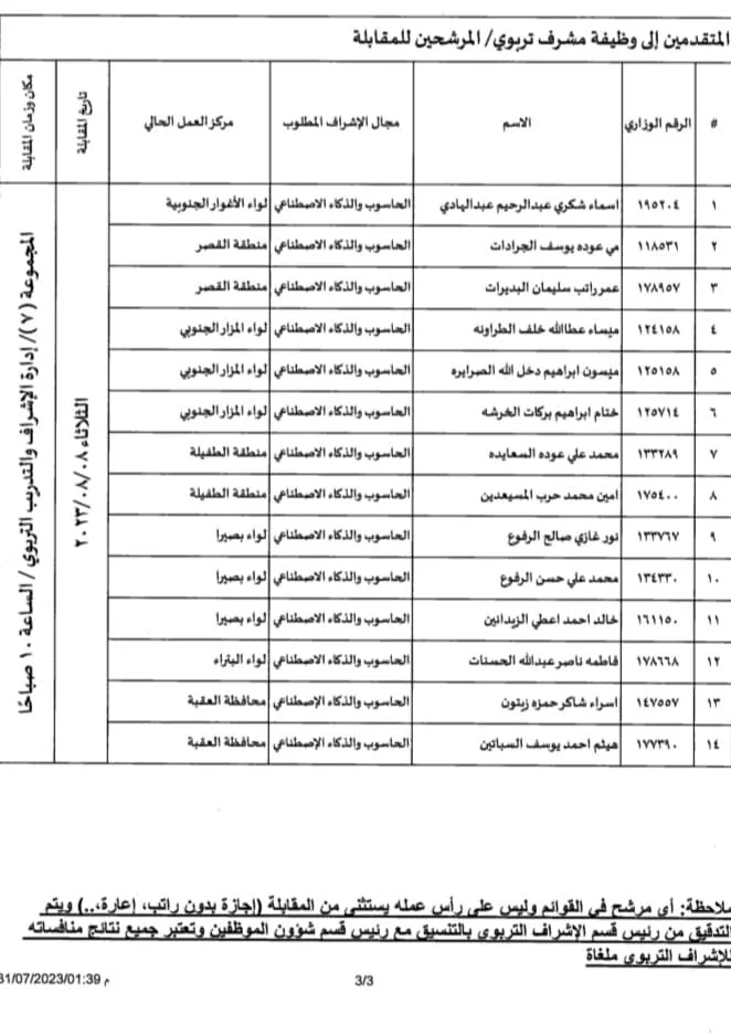 مقابلات مشرف تربوي المجموعة السابعة اسماء ومواعيد 1/8/2023