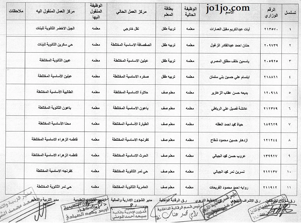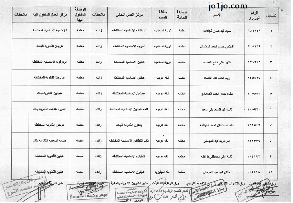 اصدرت تربية عجلون التنقلات الداخلية 2023 ومراكز العمل وتاليا اسماء التنقلات ومراكز العمل للمعلمين في تربية عجلون بالتوفيق للجميع :
