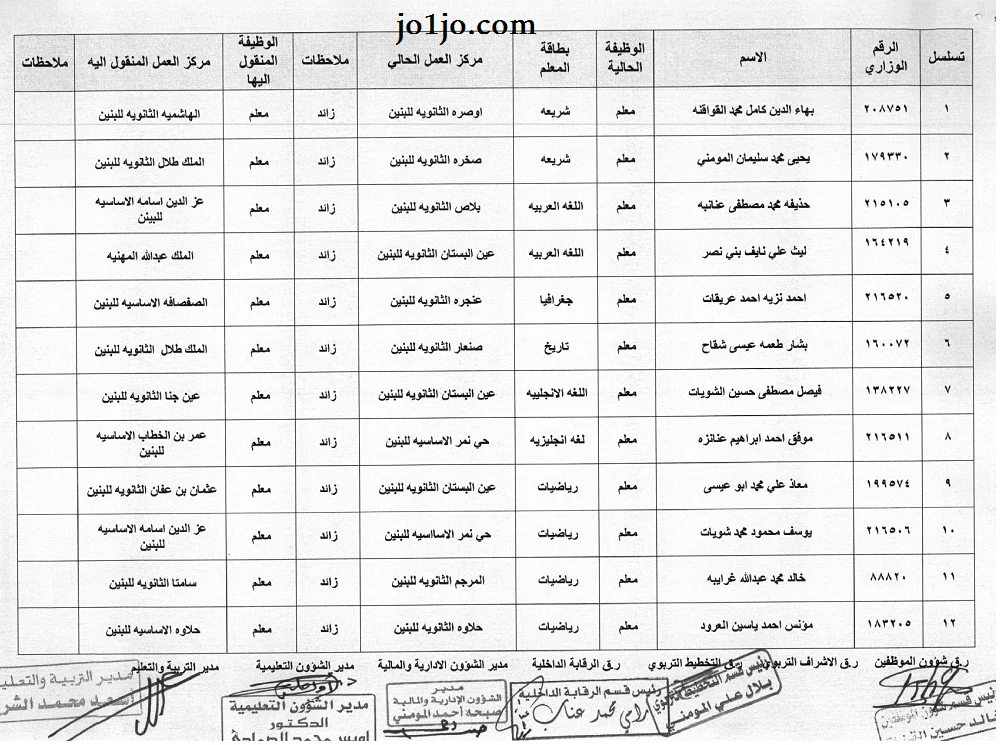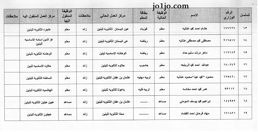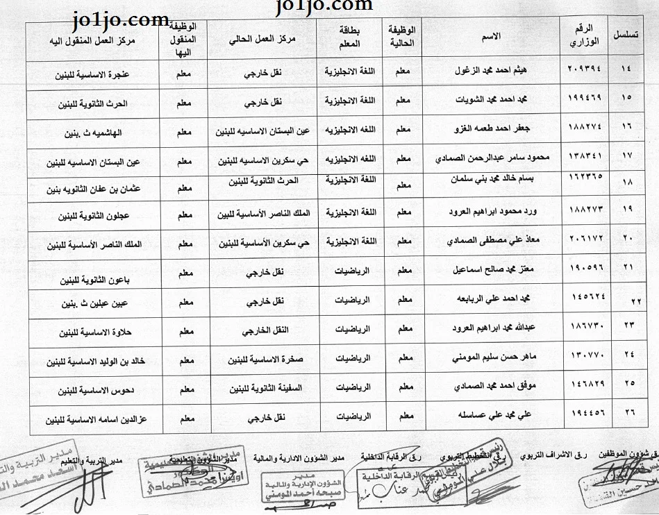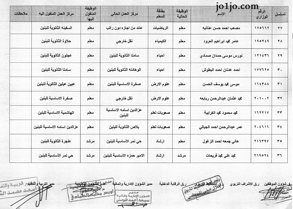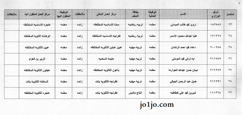 التنقلات الداخلية مديرية تربية عجلون 2023/2024