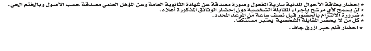 دعت التربية المرشحين التالية اسمائهم والذين تم اختيارهم وفقا لاعلى العلامات في الامتحانات التنافسية ممن تقدمو من خلال الاعلان المفتوح لاجراء المقابلات الشخصية التي تتكون من المقابلة الفردية والمهمة الكتابية التواجد في وحدة جودة التعليم والمسائلة شارع الامير محمد اسفل جبل اللويبدة اول طلوع الدوار الثالث بجانب مدرسة سمير الرفاعي ابتداء من الساعه التاسعة صباحا حسب المواعد المبين ازاء اسم كل مرشح خلال الفترة من يوم السبت الموافق 5/10/2024 لغاية يوم الثلاثاء الموافق 8/10/2024 واكدت التربية الالتزام بالمواعيد هام جدا شرط قبول المرشح الحضور للمقابلة الشخصية وتاليا الاسماء والتعليمات مع تمنياتنا لكم بالتوفيق : لتكبير الصوره بحجمها الطبيعي اختارها لتكبير