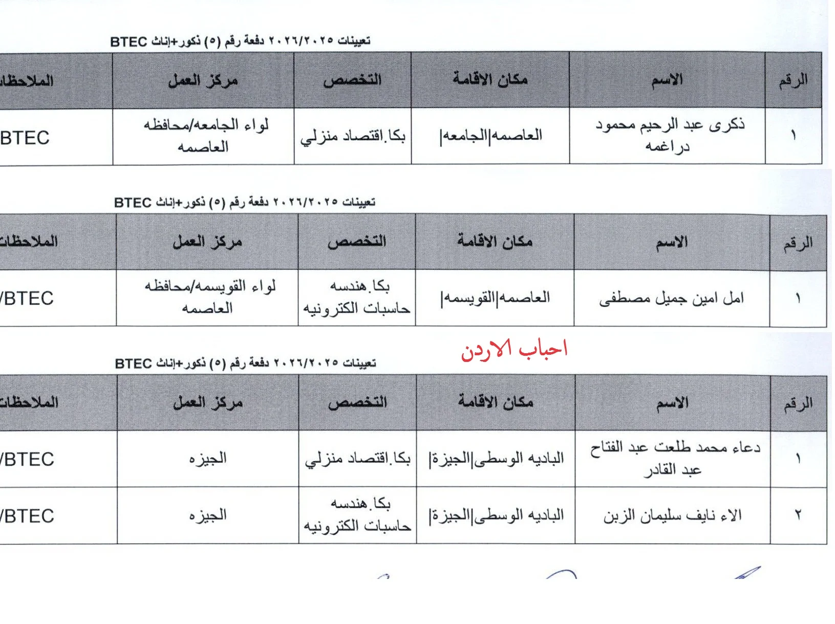 تعيينات وزاره التربية الدفعة الخامسة 2025