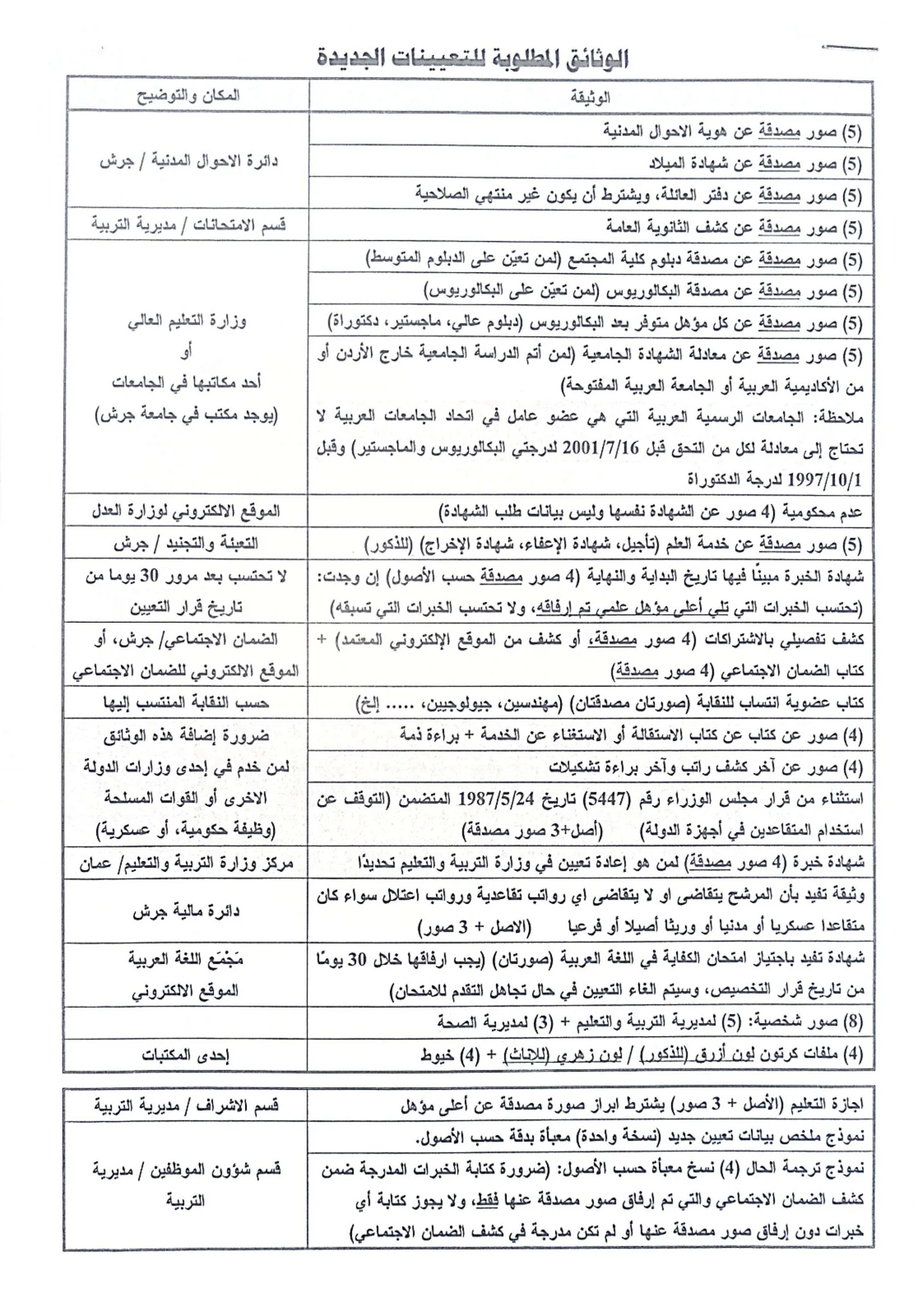 الوثائق الاوراق المطلوبة لتعيينات الجديدة 2025 احباب الاردن 3 أشهر ago الوثائق الاوراق المطلوبة لتعيينات الجديدة 2025 ارفق لكم نص الوثائق المطلوبة لتعيينات الجديدة 2025 كما في المرفق التالي يمكنك مشاهدتها مباشره او تحميلها بصيغة بي دي اف من اسفل باللون الاخضر وتمنياتي لكم بالتوفيق : حمل نسخة من الوثائق المطلوبة بصيغة بي دي اف من هنـــأ