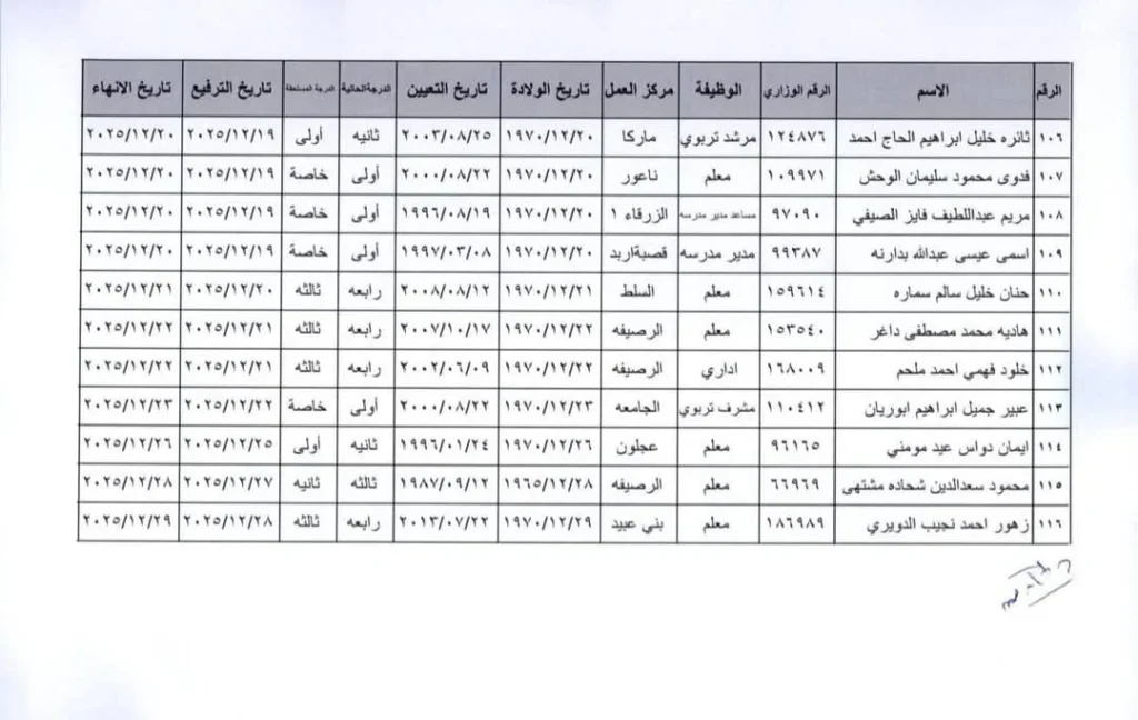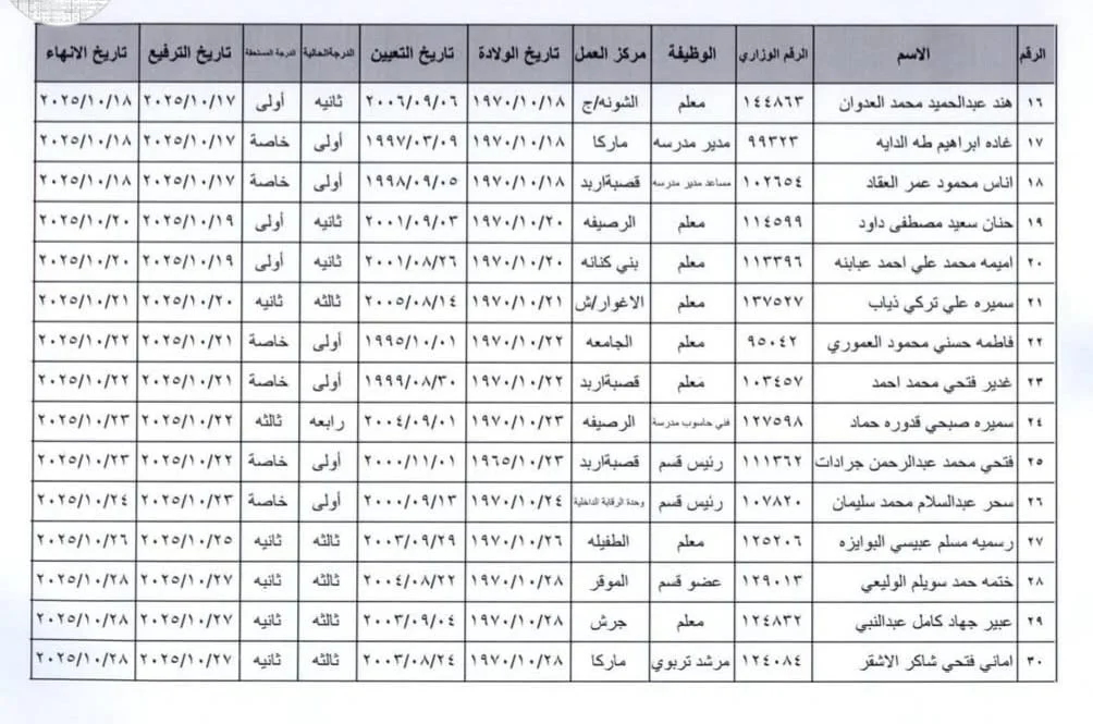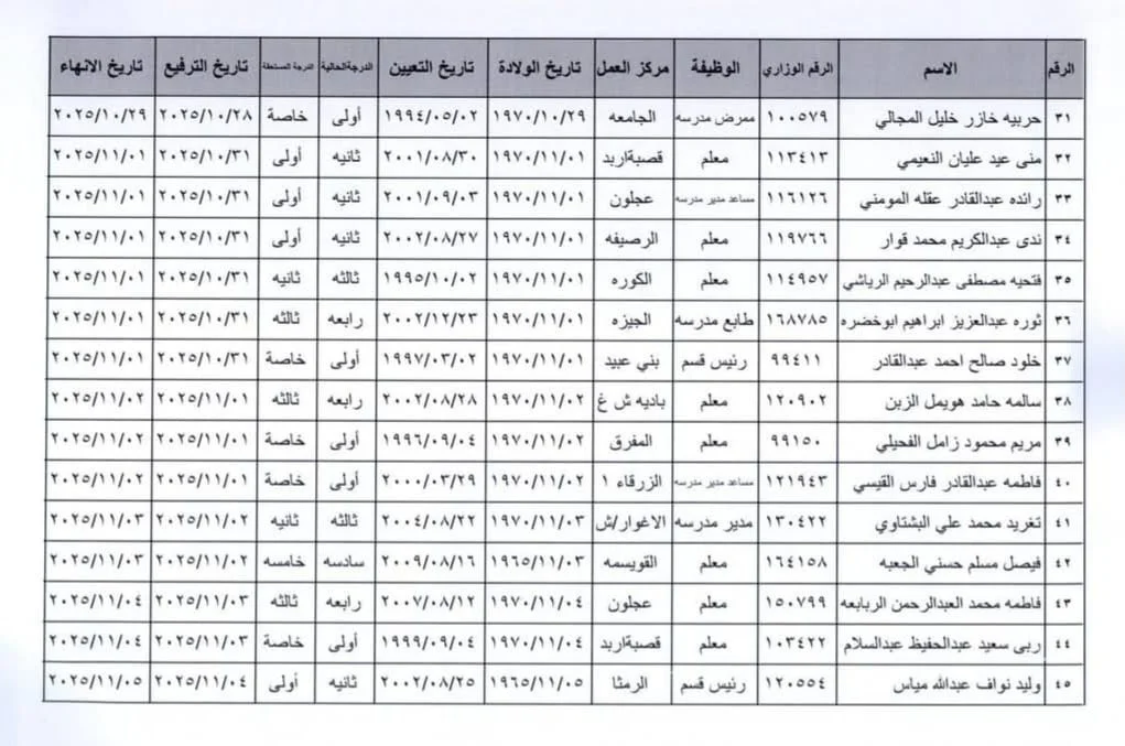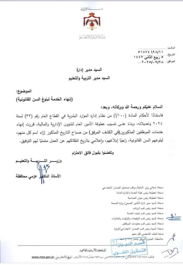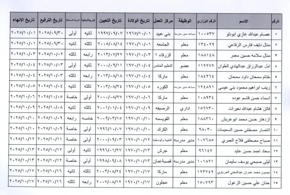 تقاعدات وترفيع وانهاء خدمة في التربية صدر 29/9/2025 احباب الاردن 4 أيام ago تقاعدات وترفيع وانهاء خدمة في التربية صدر 29/9/2025 اصدرت التربية عدد من التقاعدات لعدد من موظفيها لبلوغهم السن القانونية واسوفائهم لقوانين الضمان الاجتماعي كما في المرفقات التالية بالتوفيق للجميع :