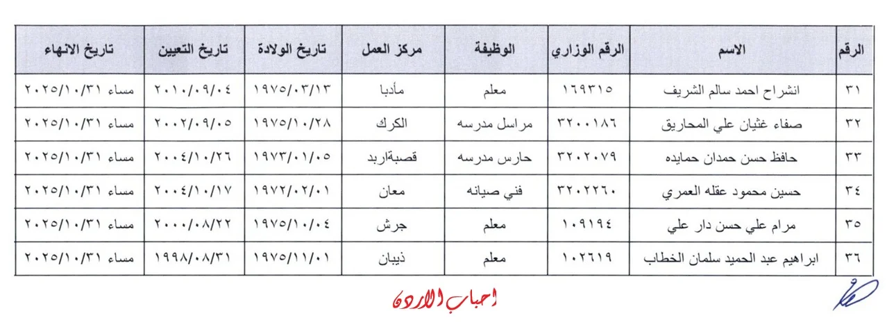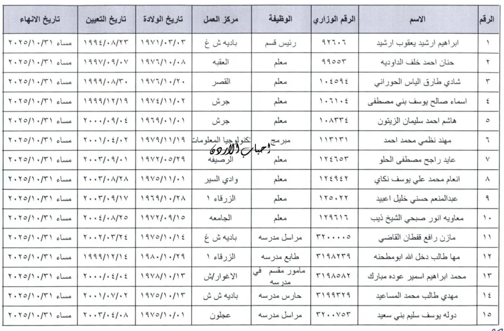تقاعدات ترفيع وانهاء خدمة في التربية صدرت 7/10/2025