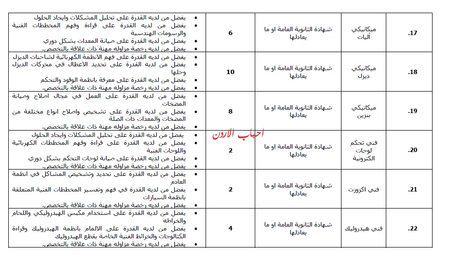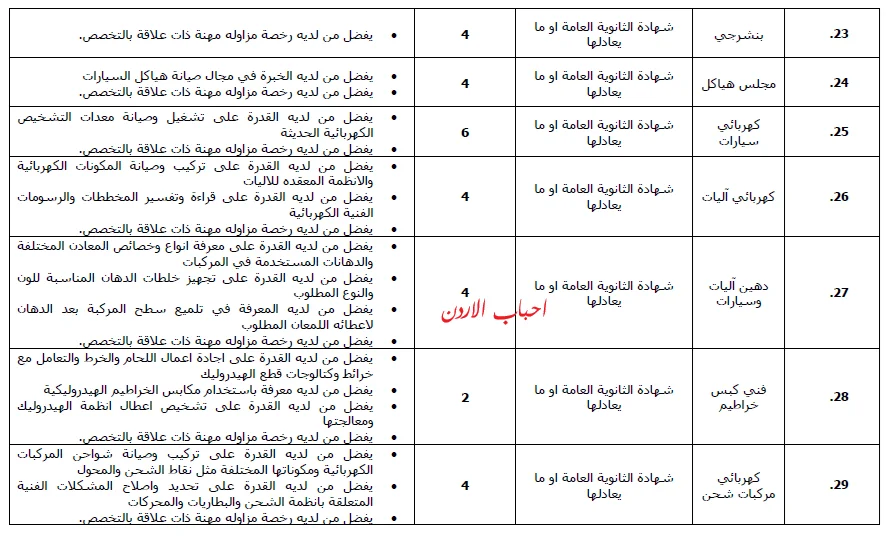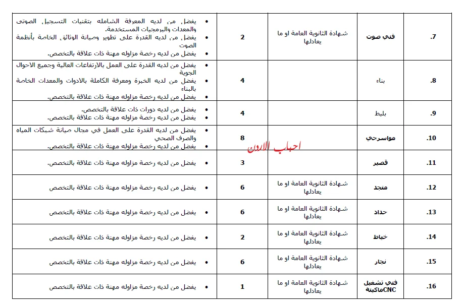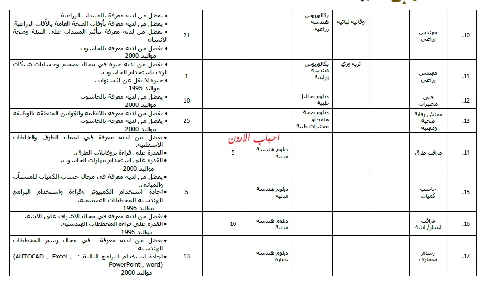 اعلان الوظائف الفئة الثالثة كما يلي :