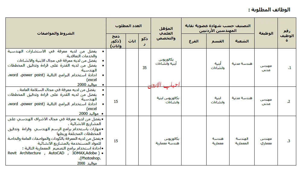 احباب الاردن : نشرت امانة مان الكبرى عدد من الوظائف المتوفرة لتقديم للفئة الثالثة والفئة الاولى والثانية تاليا الوظائف المتوفره الفئة الثالثة والوظائف المتوفره للفئة الاولى والثانية مهندسين وتخصصات اخرى حسب الجدول المرفق ورابط التقديم لكل فئة مرفقة تاليا بالتوفيق للجميع :