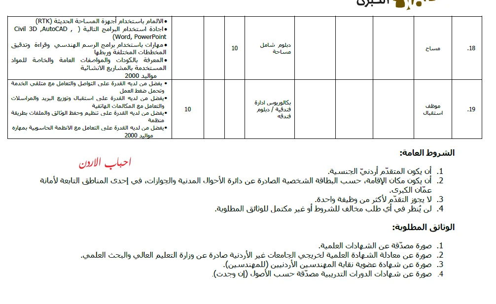 فتح تقديم طلبات التوظيف في امانة عمان الكبرى عدة تخصصات 2025