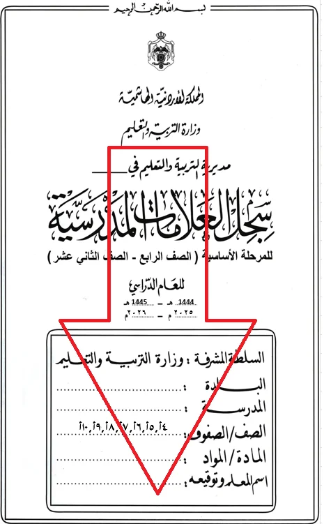 ارفق لكم نموذج دفتر علامات مدرسي بصيغة اكسل exel لتعبة لطباعة او اخذ نسخ لكتابة اليدوية يمكنك تحميل الملف من المرفقات التالية باللون الاخضر : يوجد عده نماذج