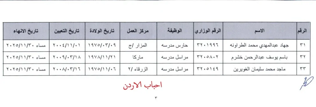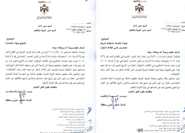 تقاعدات وترفيع وانهاء خدمة في التربية 16/11/2025 اسماء احباب الاردن 4 ساعات ago تقاعدات وترفيع وانهاء خدمة في التربية 16/11/2025 اسماء اصدرت التربية عدد من التقاعدات وانهاء الخدمة مع الترفيع لعدد من موظفيها حسب التعميم التالي المرفق تاليا بالتوفيق للجميع ان شاء الله :