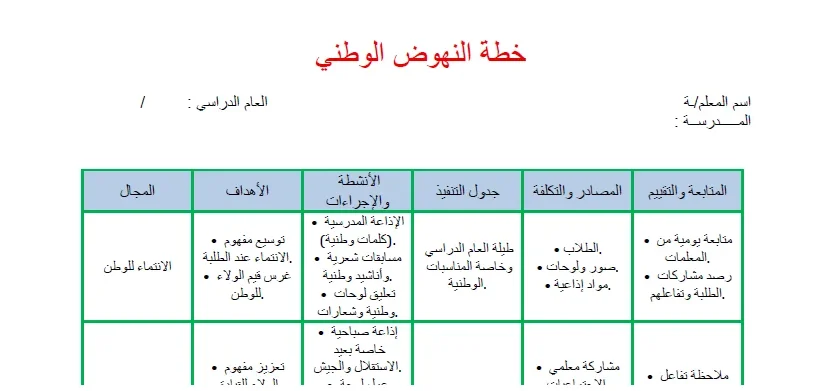 خطة النهوض الوطني 2025 جديدة تصميم جديد ارفق لكم نموذج جديد لخطة النهوض الوطني منظمة ومنسقة مع تاريخ وبدون تاريخ 2025/2026 لتحميل يوجد ملفين ملف…